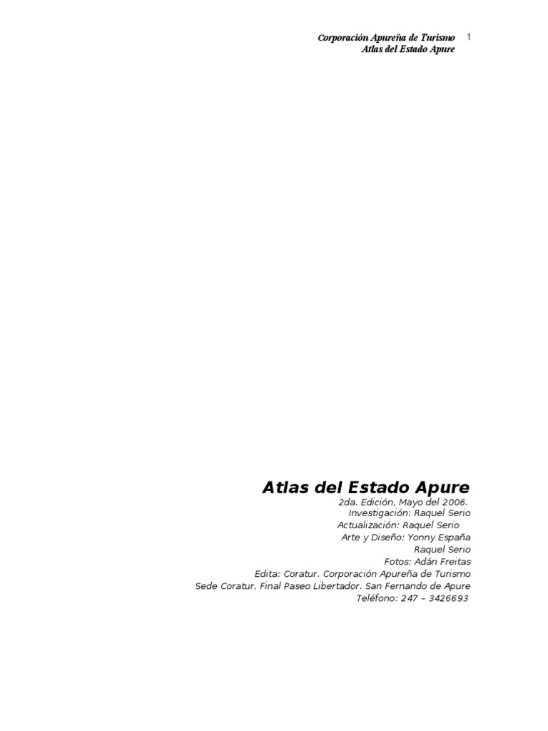 El documento presenta un resumen del Atlas del Estado Apure. Explica que el Atlas contiene información general sobre Apure como su origen del nombre, ...